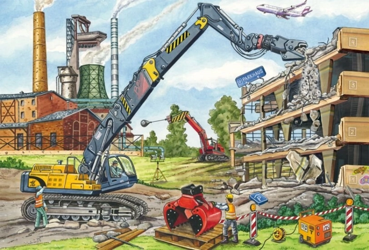 Zabavan set od tri puzzle s motivima užurbanog gradilišta brenda SCHMIDT. Svaka puzzle ima 48 dijelova i nakon slaganja mjeri cca 26,3 × 17,8 cm – idealno za djecu koja vole građevinske strojeve i kvalitetne slagalice.