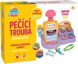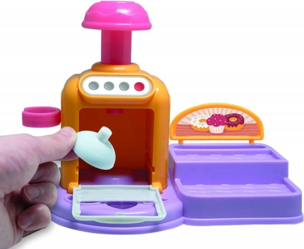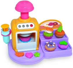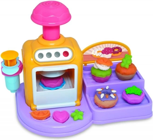 Ovaj razigrani set spaja plastelin, kalupe i mini „pećnicu” koja pritiskom na polugu istiskuje i „ispeče” vaše kreacije. Djeca mogu mijesiti „tijesto”, oblikovati cvjetiće, životinjice ili listove i ukrašavati cupcake kao u pravoj slastičarnici. Šareno izvedenje i jednostavno rukovanje potiču kreativnu igru, finu motoriku i igranje uloga.