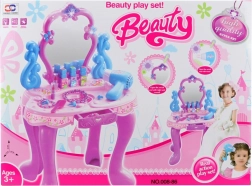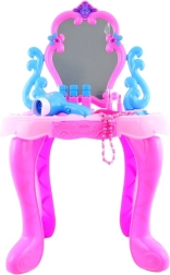 Ovaj prekrasan toaletni stol idealan je za sve male princeze. Donosi svoje čari zahvaljujući funkcionalnom sušilu za kosu i svjetlu na vrhu ogledala, koje svijetli i svira nakon umetanja baterija. Paket sadrži češalj, ogrlicu, 3 prstena, naljepnice i druge kreativne dodatke.