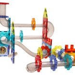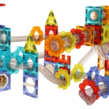 Set šarenih magnetskih kocaka za djecu od 3 godine. Set se sastoji od 176 dijelova i omogućuje izgradnju staze za kuglice u bilo kojem rasporedu. Neki dijelovi u setu napajaju se baterijama i nakon uključivanja osvjetljavaju stazu pulsirajućim svjetlima, čineći igru zanimljivijom. Svjetla pulsiraju u 3 načina: brzom, srednje brzom i sporom, a možete odabrati koji način najbolje odgovara vašem djetetu. Nekoliko kuglica dodatno treperi svojim svjetlima kada se protresu. Dio seta su i nekoliko šarenih kapsula koje svijetle i mijenjaju boje te nekoliko LED reflektora. Ukupno se set napaja s 12 x LR1130, 6 x LR41 i 8 x CR1220 baterijama. Sve baterije uključene su u set. Ciglice su izrađene od najkvalitetnije plastike, glatke su i pažljivo obrađene. Povezuju se pomoću ugrađenih magneta. Magneti vrlo dobro drže i osiguravaju stabilnost konstrukcije. U setu se nalazi i slikovni priručnik za sastavljanje primjeraka tračnica. . |
