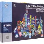 - strukturni elementi uključujući 40 magnetskih elemenata, .- 12 šarenih kuglica, .- figurica dječaka i djevojčice s pokretnim dijelovima, .- 8 treperećih svjetlećih kuglica, .- 2 kapsule koje svijetle i mijenjaju boju, - 2 diska koja pulsiraju u 3 načina rada, - 4 LED reflektora, .- dekorativne naljepnice, .- slikovni priručnik za sastavljanje različitih modela. . |