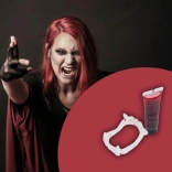 Pretvorite se u pravog vampira u samo nekoliko sekundi. Bijeli plastični očnjaci s crvenim akcentima oponašaju svježu krv, a zajedno s tubom lažne krvi stvaraju autentičan horor efekt za maskiranje i kostimografiju. Prikladno za Noć vještica, maškarade, tematske zabave te filmske i foto projekte.