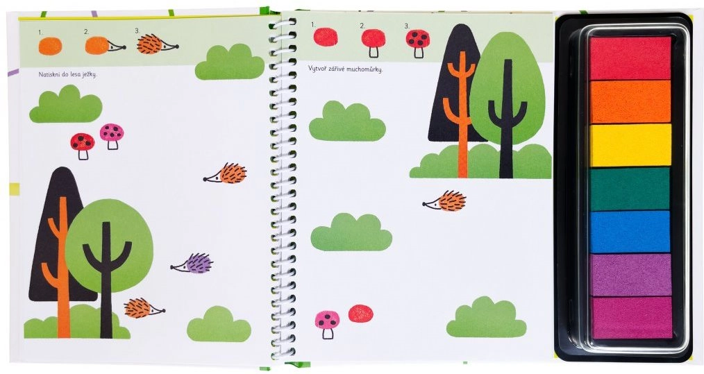Uz jednostavne upute djeca će naučiti otisnuti npr. vjeverice na granu, miševe na klasje pšenice, ribe pod vodu ili leteće šišmiše. Mogu dodati repno perje paunu, krljušti krokodilu i šarenu dlaku kravama. Tinte su perive vodom, pa se ne morate bojati mrlja na odjeći.