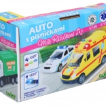Ovaj policijski auto savršena je igračka za djecu od 3 godine. Zahvaljujući poteznom pogonu igra s autom je zabavna i realistična. Svjetlosni i zvučni efekti, koji se aktiviraju tipkama na krovu auta, donose veselu zabavu i potiču dječju maštu. Sadrži tri omiljene pjesme od Miše Ružičkove: Policijska, Hitna pomoć i Čistači.