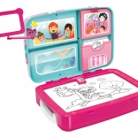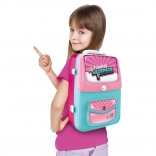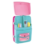 Ovaj kreativni dječji ruksak ružičaste boje veličine 28 cm idealan je pratitelj za vaše dijete. Sadrži praktične pretince za likovne alate i magnetsku ploču za krede i flomastere.