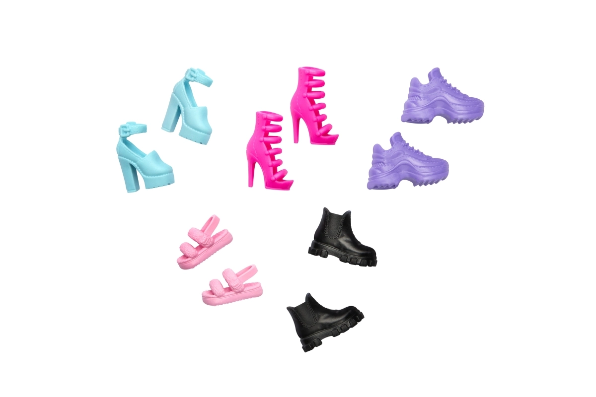 Odjenite lutku Barbie za svaku priliku s ovom kolekcijom cipela inspiriranom aktualnim trendovima obuće! Ovo pakiranje sadrži kombinaciju boja i stilova, poput štikli, čizama i tenisica, te uključuje pet parova Barbie cipela za modnu zabavu i svestranost! Cipele odgovaraju većini tipova Barbie tijela. Dob 3+