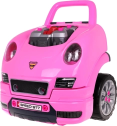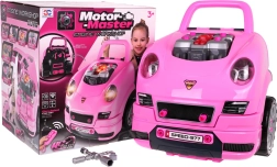 Daljinski upravljač u obliku ključeva pokreće prednja svjetla i osvjetljenje motora, kao i zvukove zaključavanja/otključavanja te trube. Praktična ručka olakšava prenošenje, a pretinac ispod volana prima sve vijce, alat i dodatke. Set razvija vještine, maštu i na razigran način uči osnove mehanike.