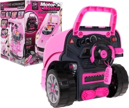 Interaktivni prednji dio vozila s instrumentnom pločom i automatskom “ručicom mjenjača” nudi djeci realističan doživljaj vožnje i servisa. Nakon pritiska na start čuje se zvuk pokretanja, a pri vožnji naprijed ili unatrag aktiviraju se odgovarajući efekti. Ispod poklopca nalazi se veliki rastavljivi motor, gdje mali mehaničari mogu mijenjati “svjećice”, kotače i druge komponente.