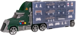Ovaj interaktivni vojni kamion nudi djeci sate maštovite igre i praktičnu pohranu. Sa strane prikolice nalaze se otvarajući pretinci za pohranu za autiće i dodatke, a na krovu kabine tobogan za autiće. Kabina svijetli i pomoću tipki reproducira zvuk paljenja, trubu i veselu melodiju.