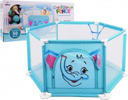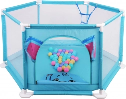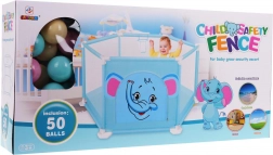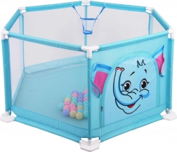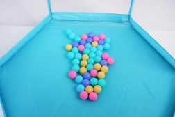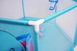 Integrirani koš unutar ogradka potiče aktivnu igru i razvoj koordinacije. U kompletu dolazi 50 šarenih loptica.