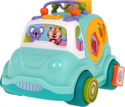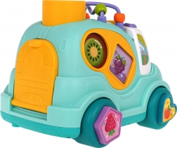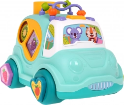 Interaktivni autobus za razvrstavanje za djecu od 18 mjeseci potiče finu motoriku, prepoznavanje oblika i boja te koordinaciju oko-ruka. Nudi svjetlosne i glazbene efekte, razvrstavanje oblika sa strane i na kotačima, ubacivanje zvečke loptica čekićem i praktična stražnja vrata na otvaranje za lako vađenje dijelova.