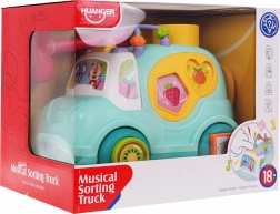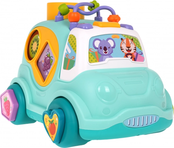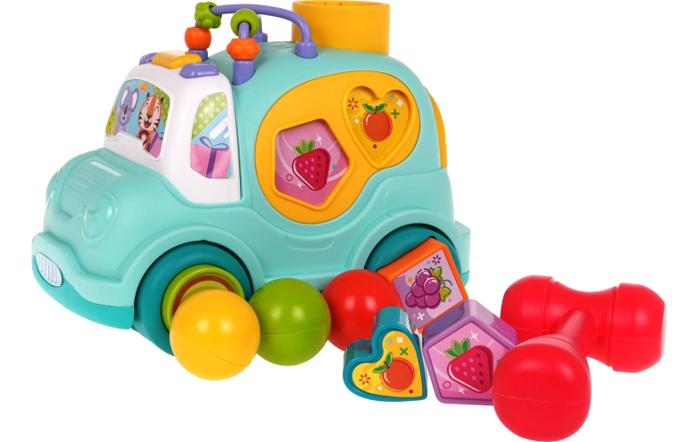 Ovaj šareni autobus donosi djeci sate zabave i učenja u jednom. Sa strane i na kotačima nalaze se otvori za razvrstavanje oblika, a na krovu otvor za loptice koje mogu čekićem s radošću ubacivati unutra. Loptice imaju zvečkice, pa je igra još zabavnija i senzorno poticajnija.