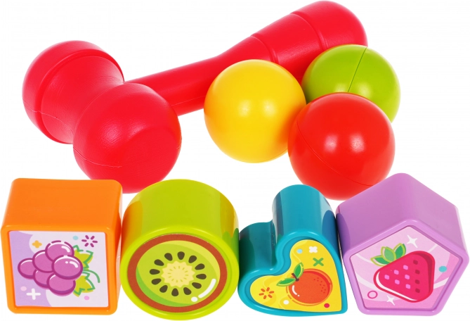 - Bogata oprema: 4 kocke, 3 zvečka loptice i čekić