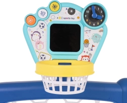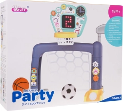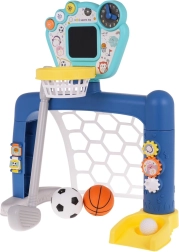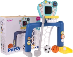 | . | nogometni gol s košarkaškim obručem, .- gumena košarkaška lopta, .- gumena nogometna lopta, .- gumena golf loptica, .- golf palica, .- interaktivna ploča s prikazom bodova i točkica, .- korisničke upute, .- torbica za loptice. . |