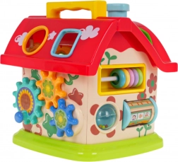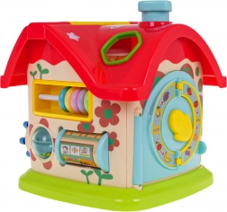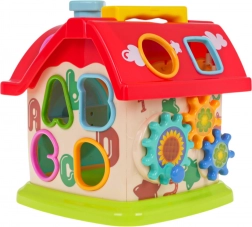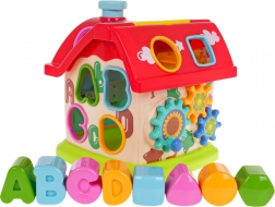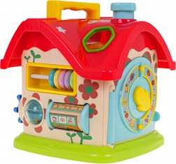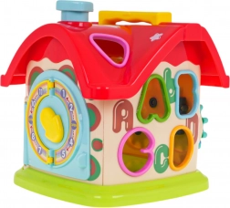 Multifunkcionalna kućica sa sorterom idealna je interaktivna igračka za najmlađe. Zahvaljujući živim bojama i promišljenim aktivnostima potiče koordinaciju oko–ruka, razvoj kognitivnih vještina i učenje kroz igru. Krov s otvorima za geometrijske oblike, stranica s izrezima slova A–D i učeći sat pomažu djeci vježbati prepoznavanje oblika, slova i vremena.