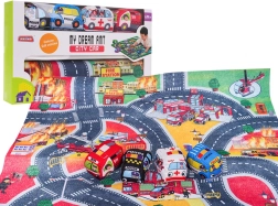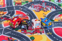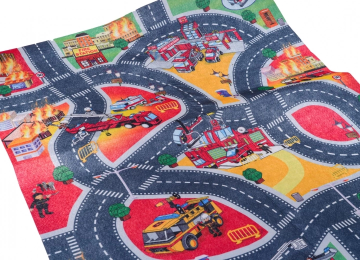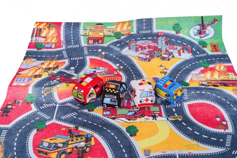 Ova mekana igraća podloga pretvara sobu u užurbani grad s vatrogasnom postajom, cestama i spasilačkim scenama. Zahvaljujući filcanom materijalu, ugodna je na dodir i sigurna i za najmlađu djecu. U kompletu su četiri plišana vozila – vatrogasno vozilo, hitna pomoć, policija i autobus – spremna za svakodnevne avanture.
