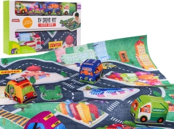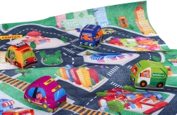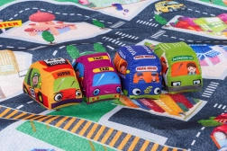 Ova šarena filcana podloga s gradskim motivom stvara savršeno okruženje za prve cestovne avanture. U kompletu su 4 mekana autića koja dobro leže u malim rukama i sigurna su za malu djecu. Zahvaljujući kompaktnim dimenzijama, podloga je prikladna za dječju sobu i za putovanja.