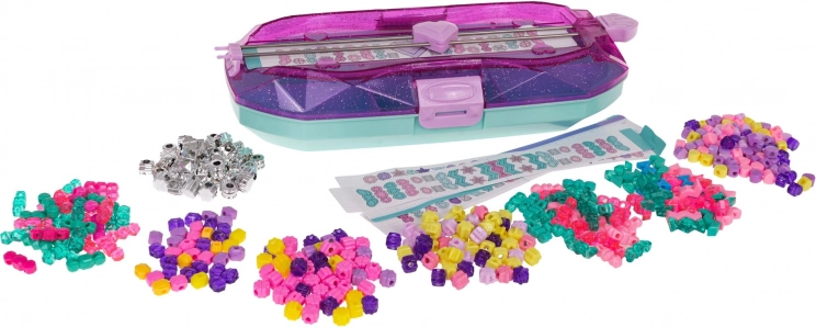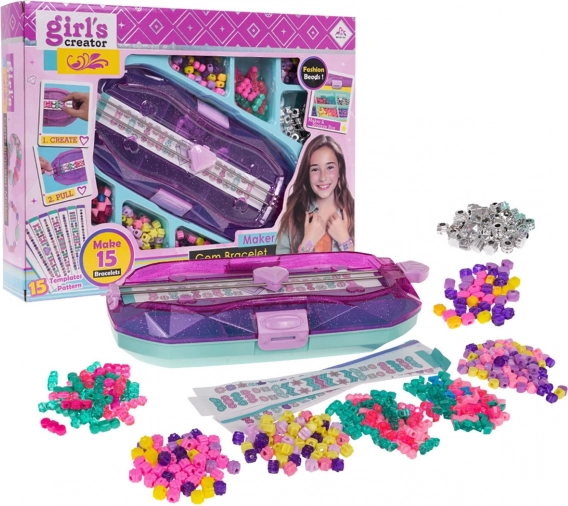 Ovaj bogato opremljen set idealan je za male stvaratelje koji žele dizajnirati i izrađivati svoje vlastite originalne narukvice. Zahvaljujući mašinici s prostorom za pohranu rad s perlicama je pregledan i udoban – dovoljno je nategnuti najlon, staviti perlice i povući gotov uzorak. Djeca mogu stvarati prema priloženih 15 predložaka ili pustiti mašti na volju.