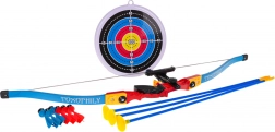 Zabavan set za male strijelce od 3 godine: dječji luk s podesivim nišanom i laserom, mekane strijele s vakuumskim čepovima, meta s vakuumskim čepom i bacačke strelice. Igra razvija preciznost, koncentraciju i odličan je trening za ramena i leđa. Sve je sigurno za djecu zahvaljujući gumenim vakuumskim čepovima.