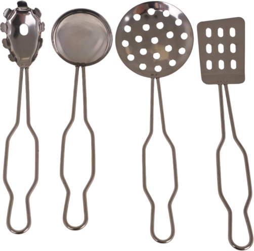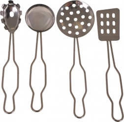 U setu su i kliješta, kutlača, lopatica i žlica s rupicama – sve što djeci treba za kuhanje i posluživanje.
