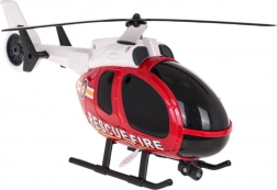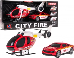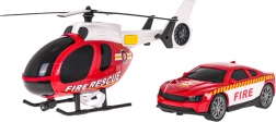 Interaktivni vatrogasni set kombinira robusni helikopter i brzo vatrogasno vozilo za realističnu igru spašavanja. Helikopter pritiskom na gumb pokreće prednje i stražnje osvjetljenje te autentične zvukove motora, sirene i leta. Auto sa slobodnim pogonom i gumenim gumama glatko vozi po bilo kojoj podlozi. Rotorima helikoptera može se ručno okretati za još više zabave.