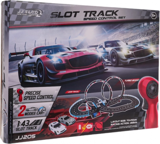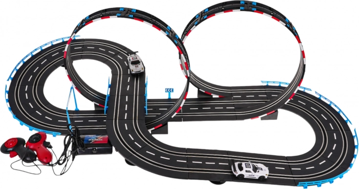 | - konstrukcijski dijelovi staze, - 2 vozila, - 2 daljinska upravljača, - USB kabel napajanja za adapter. |