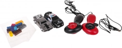 - konstrukcijski dijelovi staze, .- 10 cigli, .- 2 vozila, .- 2 daljinska upravljača, - USB kabel za napajanje adaptera . |