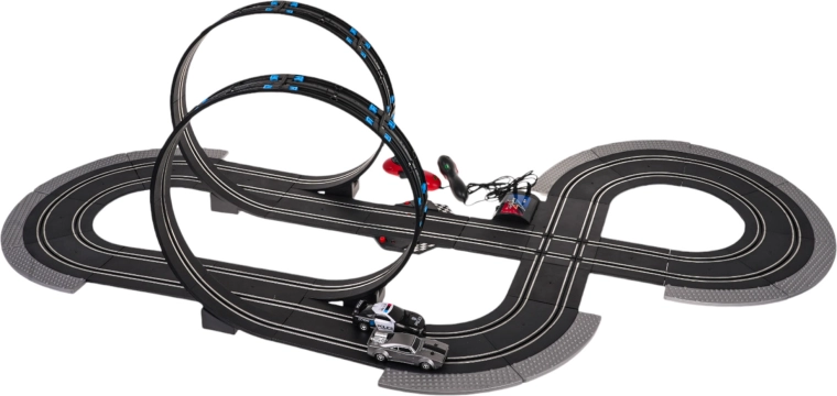 Pojedinačni građevni blokovi omogućuju vam izgradnju staze s oštrim zavojima, spiralama i ravnim dionicama, sve to za maksimalnu zabavu i pojačano uzbuđenje tijekom cijele igre. Set sadrži dva vozila, uključujući jedno policijsko vozilo. Automobili imaju pokretne haube. Set je idealan za djecu stariju od 6 godina. Igračka se napaja s 6 x AA 1,5 V baterija (baterije nisu uključene). .. Značajke seta . - pogodno za djecu stariju od 6 godina, .- izrađeno od laganih kvalitetnih materijala, .- staza sadrži ravne dionice, 360° petlje, zavoje, spirale, .- mjerilo 1:43, .- set od 10 blokova za postavljanje uz rubove staze, .- vozila imaju pokretne haube, .- staza se može napajati iz mreže ili baterijama, .- brojač krugova, .- 2 brzine. . |