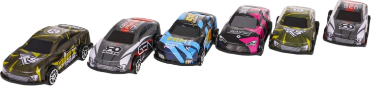 U pakiranju je šest detaljnih vozila s metalnom karoserijom i aerodinamičnim dizajnom, spremnih za utrku.