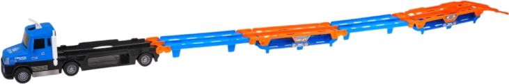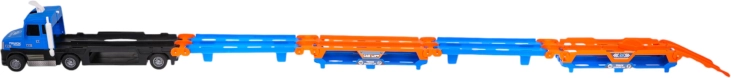 Nakon otvaranja kamion stvara dvoetažnu stazu dugu do 140 cm, idealnu za utrke s priloženim autićima.