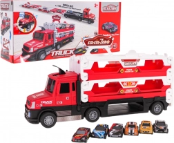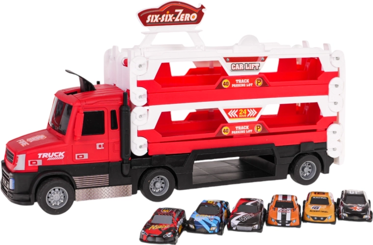 Zabavni troslojni kamion s katapultom za djecu od 3 godine nudi sate akcijske igre. Ima gumene gume za stabilnu vožnju, svjetlosne i zvučne efekte, a nakon rasklapanja pretvara se u dugu trkaću stazu od 140 cm. U pakiranju je 6 metalnih autića u mjerilu 1:64 i praktični organizer/sorter za vozila.