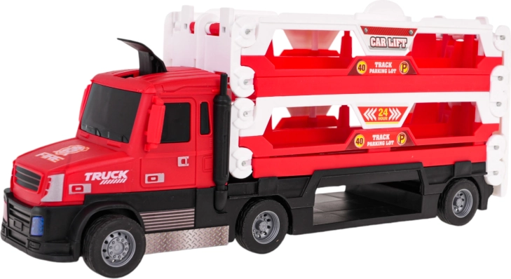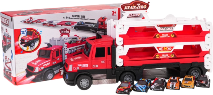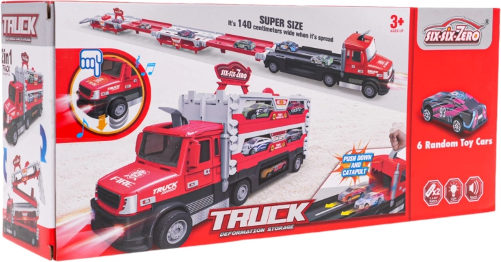 Ovaj interaktivni transportni kamion 2u1 oduševit će sve male vozače. Tri kata nude dovoljno prostora za pohranu autića, a nakon rasklapanja stvaraju dugu stazu niz koju auti jure zahvaljujući ugrađenom katapult izbacivaču. Izdržljiva konstrukcija u živim bojama i gumene gume osiguravaju jednostavno rukovanje i stabilnost.