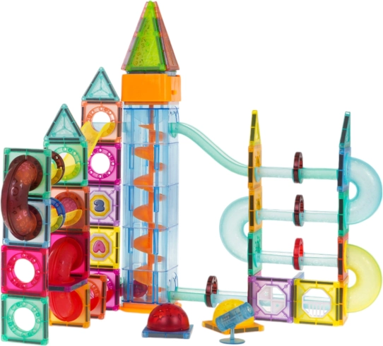 Prozirne cijevi, magnetni oblici i jedinstveni elementi omogućuju djeci osmišljavanje originalnih staza koje potiču maštu i logičko razmišljanje.