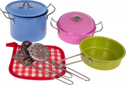 Osvijetlite igru svog djeteta s ovim predivnim kompletom šarenog kuhinjskog pribora. Sadrži prekrasan plavi lonac s ručkama i poklopcem, ružičasti lonac s ručkama i poklopcem, zelenu tavu, i razne kuhinjske dodatke, što sve zajedno čini savršeni set za mlade kuhare.