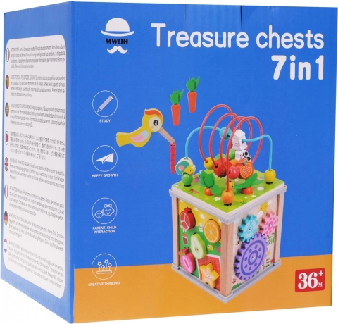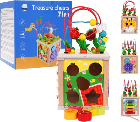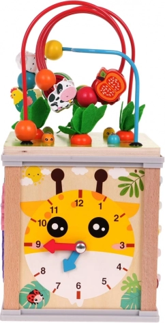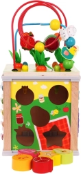 Drvena multifunkcionalna kocka za djecu nudi beskrajne mogućnosti zabave i učenja za djecu od tri godine. Kocka potiče kreativnost, razvoj fine motorike, koordinaciju te uči prepoznavati boje i oblike.