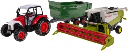 Sigurna za djecu od 3 godine, metalna konstrukcija osigurava izdržljivost i dugotrajnost. Traktor je opremljen odvojivom prikolicom koja se može ručno podizati i spuštati, zajedno sa spiralom na stražnjoj strani. Kombajn ima priključni heder sa sakupljačem sijena i pokretnu ispustnu cijev za realistične poljoprivredne simulacije.