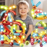 Magnetska konstrukcijska igra omogućuje izgradnju raznolikih plošnih i trodimenzionalnih struktura, potiče kreativnu igru te razvoj motoričkih i logičkih vještina.