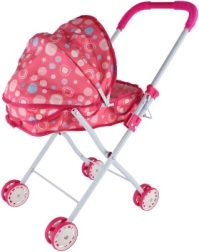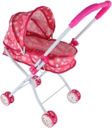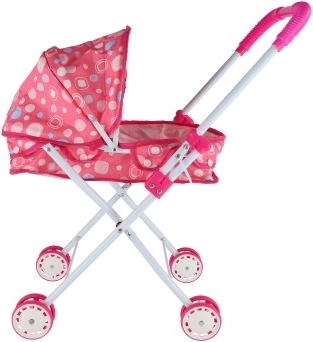 Priuštite svojoj maloj mamici lijepa duboka kolica za lutke s mekom platnenom košarom. Zahvaljujući laganoj metalnoj konstrukciji i izdržljivim kotačima, djeca njima lako upravljaju i u kući i vani. Platneni dijelovi u ružičastim uzorcima djeluju razigrano, a pažljiva izrada osigurava dug vijek trajanja.