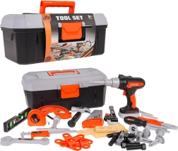 Ovaj set dječjeg alata nudi sve što malim majstorima treba za kreativnu igru. Sadrži interaktivnu bušilicu s izmjenjivim bitovima, zaštitne naočale, metar, ključ za šarafe, odvijač, čekić, pilu, kombinirke i druge dijelove za sigurnu i zabavnu igru. Napajaju se s dvije AA baterije (nisu uključene).