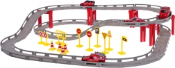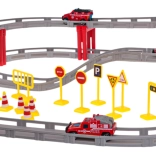 Trkaća staza Vatrogasna verzija dizajnirana je za djecu od 3 godine naviše. Ova jedinstvena staza uključuje 35 elemenata koji čine dva nivoa staze s ravnim dionicama i zavojima. Izrađena od visokokvalitetne plastike, postava jamči izdržljivost i dug vijek trajanja.