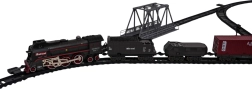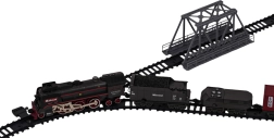 | Preporučujemo. . | Retro vlak-set s funkcijom dima, zvukovima vožnje i tračnicama u pakiranju, prikladan za djecu od 3 godine. Igračka se napaja punjivom baterijom 3,7 V (uključena u isporuku), daljinski upravljač koristi 2 x AA 1,5 V baterije (nisu uključene). Daljinski upravljač je ujedno jedno od vozila. Tijekom vožnje lokomotiva ispušta dim iz dimnjaka i s bočnih strana (nakon punjenja vodom – vodena pipeta je dio seta), a dodatno svijetli prednje svjetlo. Tračnice imaju jednostavan način spajanja, sigurne su i čvrste za upotrebu. .. Funkcije seta: . - prikladno za djecu od 3 godine, . - dim izlazi iz dimnjaka i slijeva se niz bočne strane, .- prednje svjetlo na lokomotivi, .- zvukovi tijekom vožnje, .- vožnja naprijed-nazad. |