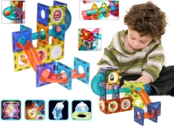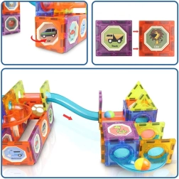 Magnetska konstrukcijska igra s 49 dijelova spaja stvaranje, svjetlosne efekte i dinamiku staze za kuglice. Prozirni plavi, narančasti i žuti elementi lako se povezuju i stvaraju 3D konstrukcije s tunelima, mostovima i zavojima. Svjetleće kuglice i osvijetljeni moduli daju igri efektan izgled i potiču dječju znatiželju.