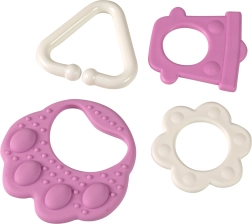 Grickalica medvjeđa šapa idealna je za umirivanje bolnih desni vašeg djeteta. Njena konstrukcija omogućava jednostavno držanje, pri čemu svaka šapa ima visoke plastične oblike, poput kružića, srca i zvončića koji će zanimati vaše dijete:
