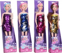 Obuci, počešlji i kreni u grad u zabavu! Ova moderna lutka s šarenim pramenom u kosi i haljinom s flitorima koji mijenjaju boje dodirom ruke, idealna je za svaku malu damu.