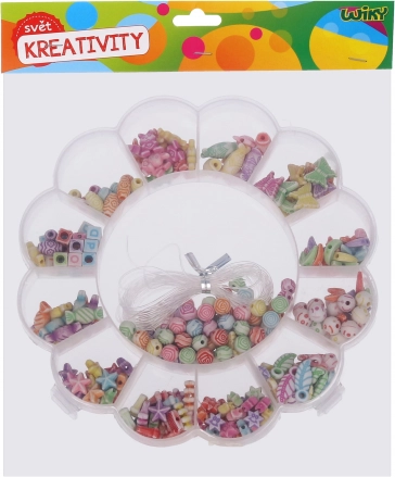 Kreativni set perlica 80 g u obliku cvijeta. 13 vrsta perlica + uzica. Idealan za izradu narukvica, ogrlica i DIY dekoracija.