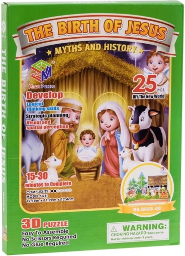 3D slagalica mjesta Isusova rođenja izrađena je od posebnog materijala – pjene debljine oko 3 mm presvučene laminiranim tiskanim papirom. Sastavljanje prostornog modela zabavit će ne samo iskusne slagatelje, već i početnike. Dijelovi se spajaju bez upotrebe ljepila i škara – prethodno izrezani dijelovi jednostavno se izbiju iz arka. Gotova slagalica bit će kolekcionarski i dekorativni dodatak stanu, uredu ili dječjoj sobi.