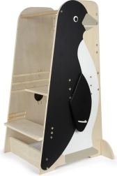 Omogućite djeci siguran pristup radnim plohama uz učeći toranj u obliku pingvina. Zahvaljujući visinski podesivoj platformi, stabilnoj drvenoj konstrukciji i nosivosti od 50 kg, toranj raste s djetetom i omogućuje mu sudjelovanje u kuhanju, igri i učenju. Sigurnosne pregrade i praktična sklopiva „krila“ za odlaganje krpa ili rukavica za pećnicu čine ovaj toranj svakodnevnim pomagačem za djecu od 2 godine.