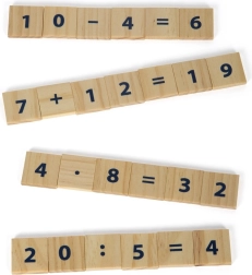 Drvene pločice s jednadžbama i brojevima motiviraju djecu na samostalno rješavanje i brzo ponavljanje.