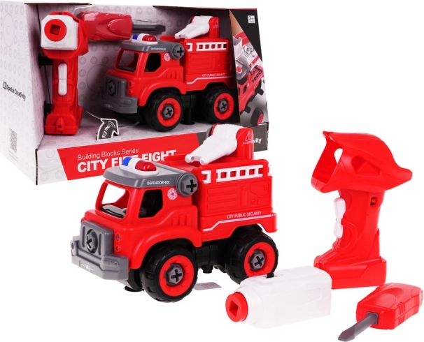 Ovaj rastavljivi vatrogasni kamion donosi djeci zabavnu gradnju i uzbudljivu akciju. Zahvaljujući priloženom ručnom odvijaču i baterijskoj bušilici, mali tehničari isprobavaju montažu pojedinih dijelova te razvijaju finu motoriku i maštu. Nakon umetanja upravljačke ploče auto može voziti samo naprijed ili natrag, a po želji se može upravljati kao RC vozilo.