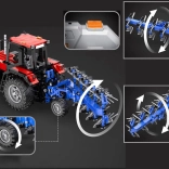 Nakon sastavljanja dobit ćete daljinski upravljani traktor s detaljnom kabinom, gdje poluga služi kao glavni prekidač. Cijenit ćete podešavanje volana i sjedala, pomične blatobrane, otvarajuću haubu motora i mogućnost ugradnje dodatne opreme. Ne nedostaje podizanje stražnje kuke i okretanje prihvata za 180°, što vjerno oponaša stvarne poljoprivredne operacije.